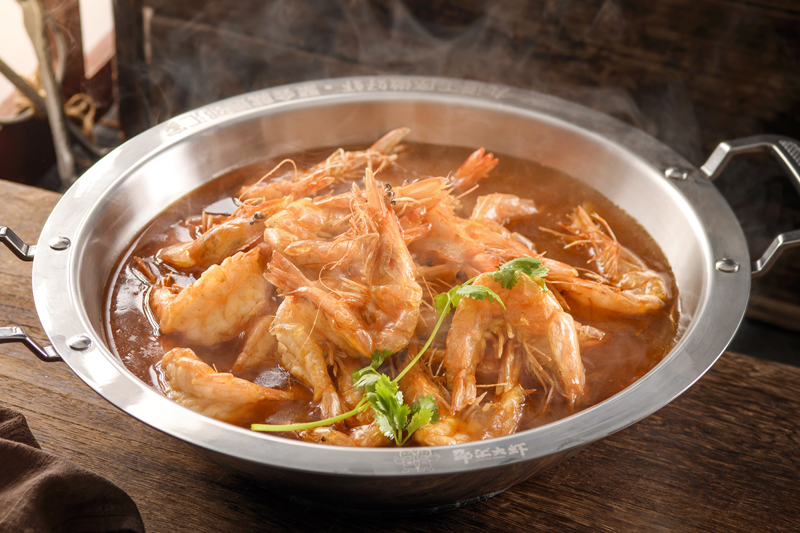 邵匯大蝦擁有強大的后勤保障部門,核心底料由公司中央工廠集中配送,食材精選進口大蝦,搭配秘制底料制作而成,研發出一鍋兩吃的飲食模式(先吃蝦后涮菜,葷素搭配隨心選),打造出綠色健康的飲食新文化。